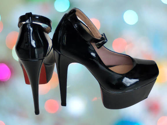 - > 1050320 G SAPATO COM TIRA TORNOZELO PRETO VERNIZ